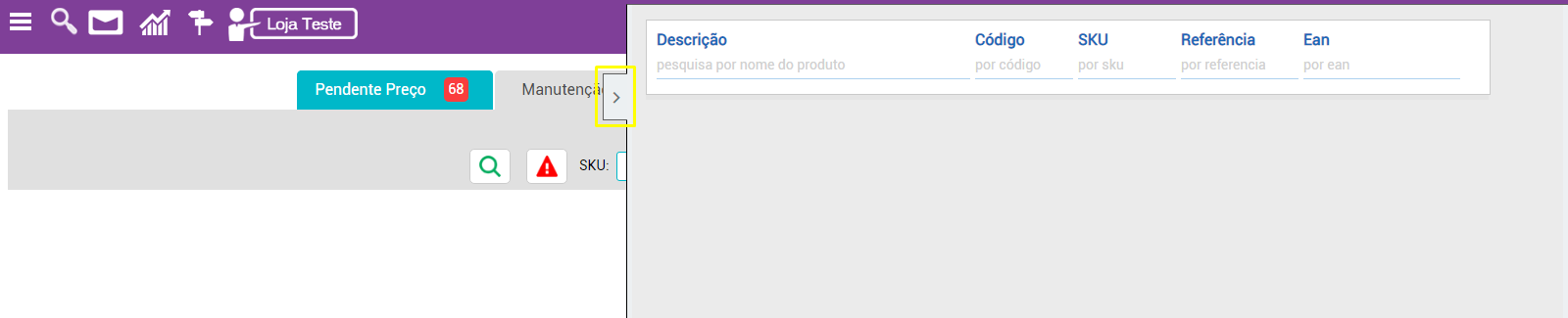 Inicie sua pesquisa normalmente na tela de manutenção de preço usando o SKU, referência ou código do produto