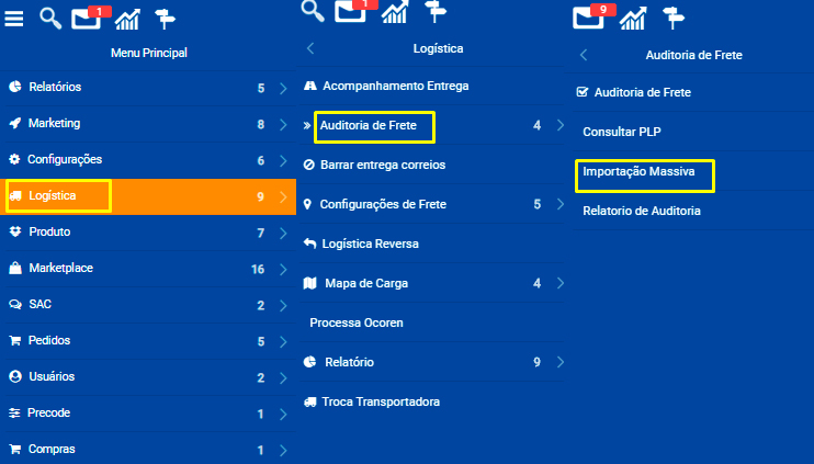 Quando não tem integração com os correios pode importar massivamente o arquivo para se fazer uma auditoria de frete dos correios: