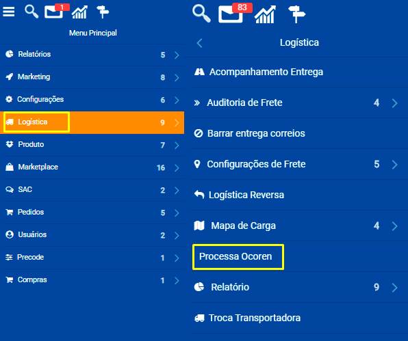 Para se ter acesso a tela de processa ocorren é necessário seguir os seguintes passos: