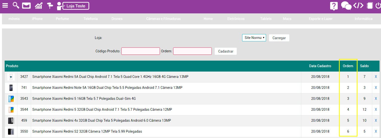 Obs: Quando o saldo do produto fica igual a zero o produto automaticamente sai da home e o que está na vez sobe no lugar obedecendo a ordem.